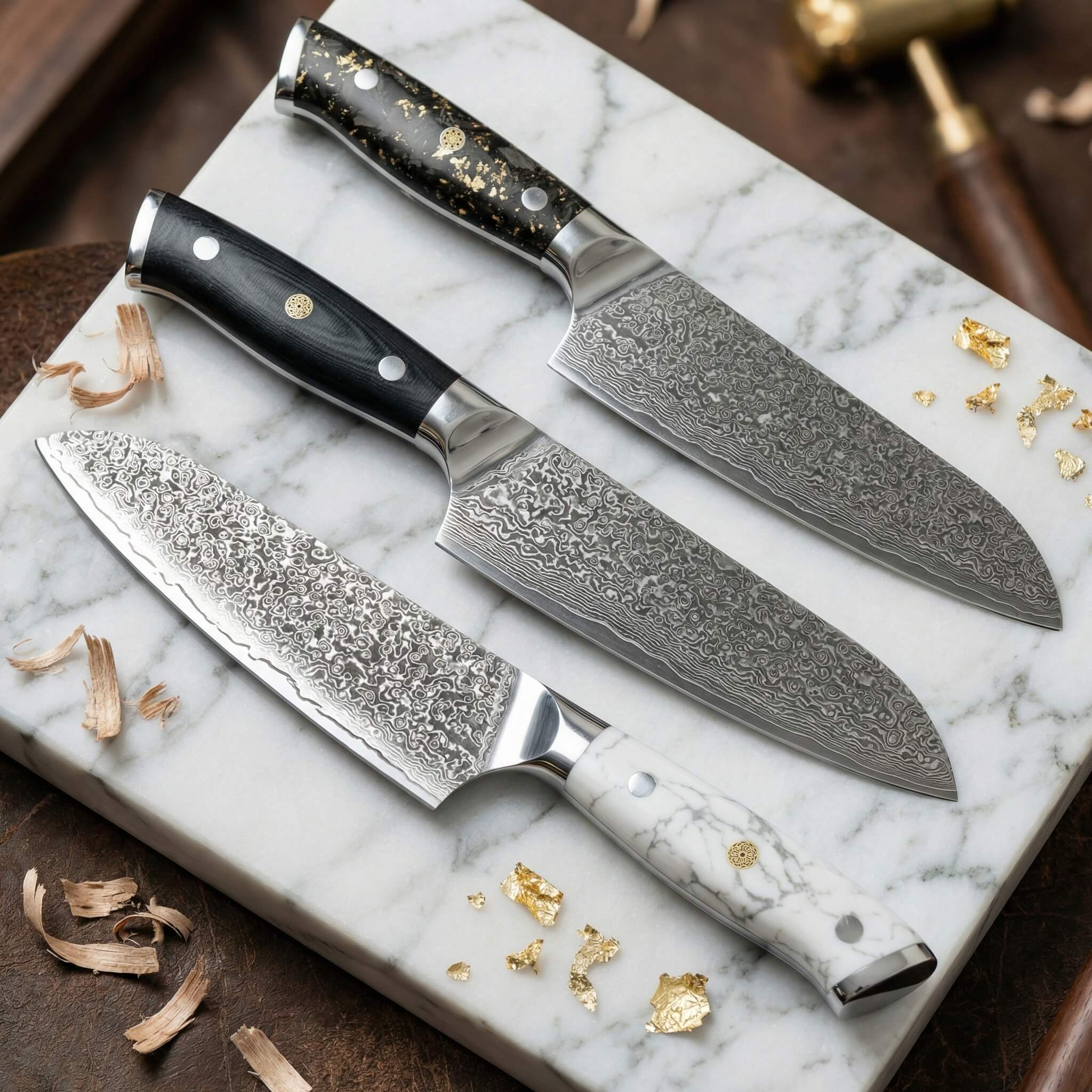 Forgés à partir de l’acier damas, nos couteaux sont conçus pour être durables et solides dans le temps. La dureté de la lame de l’acier, de 60±2 HRC, est une garantie de qualité supplémentaire pour cette collection.